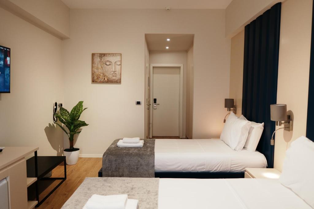 The spacious triple room provides air conditioning, a wardrobe, as well as a private bathroom featuring a shower and a hairdryer. Boasting a balcony, this triple room also features a safe deposit box, a tiled floor and a flat-screen TV with satellite channels. The unit offers 2 beds.